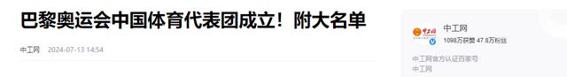 中工网 2024-07-13《巴黎奥运会中国体育代表团成立!附大名单》