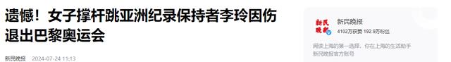 光明网 2024-07-24《遗憾!撑杆跳名将李玲受伤,退出巴黎奥运》