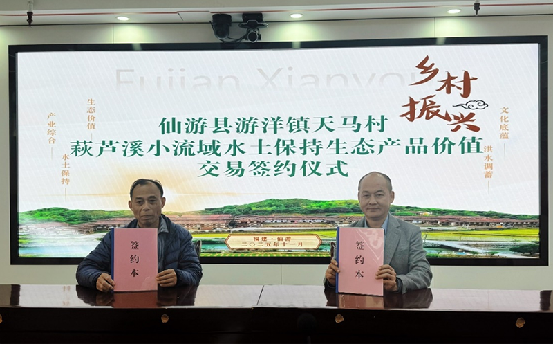2025年11月26日,莆田市首单水土保持生态产品价值转化交易在仙游县游洋镇天马村成功落槌。天马村将萩芦溪小流域(天马村段)水土保持生态产品的三年经营权,以15.12万元的价值公开出让,这笔交易不仅为仙游水土保持治理画卷添上点睛之笔,也开启福建省水电设计院生态产品价值核算业务从“0”到“1”的破冰启程。