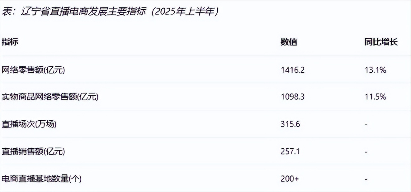 辽宁省作为中国东北地区的经济中心和数字经济创新发展高地,直播电商产业近年来实现了跨越式增长。2025年上半年,全省网络零售额达1416.2亿元,同比增长13.1%,高于全国平均水平4.6个百分点,展现出强劲的发展势头。其中,实物商品网络零售额1098.3亿元,同比增长11.5%,高于全国5.5个百分点,占全省社零额比重为21.4%。全省限额以上单位网上零售额增长39%,推动消费市场持续升温。
