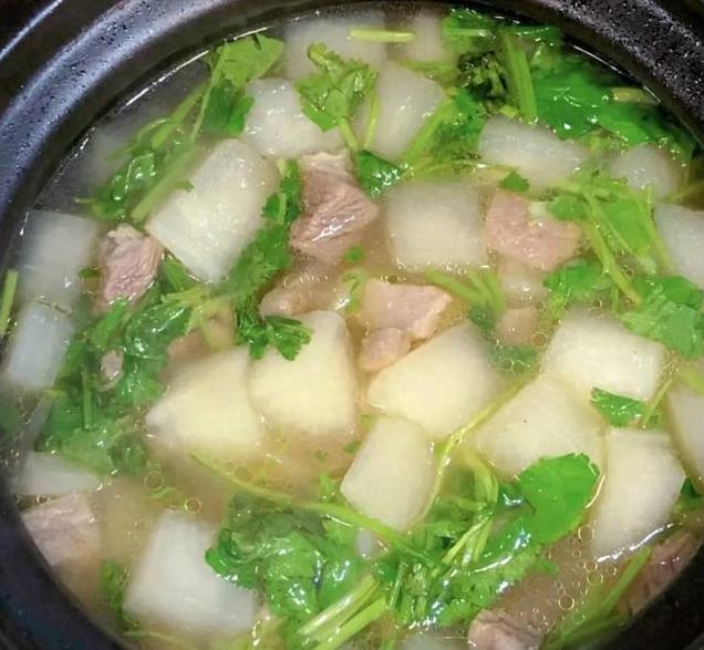 4. 羊肉煮熟,放入萝卜块,继续炖煮 20 - 30 分钟,至萝卜熟透,羊肉软烂,撒上香菜段,即可。