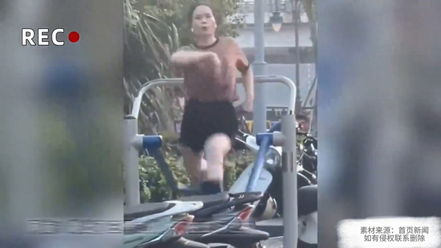 大妈使用公园器材锻炼,玩出了腾云驾雾的感觉。