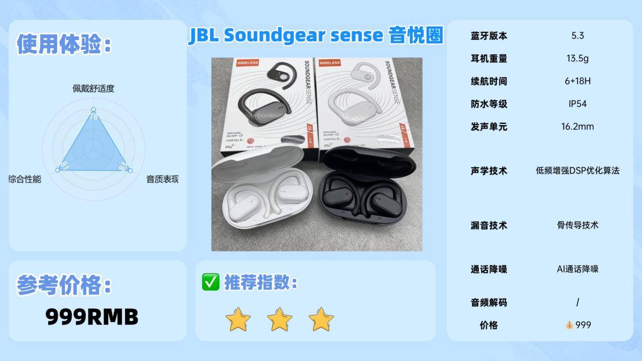 作为在运动音频领域积累深厚的JBL品牌旗下产品,Soundgear Sense音悦圈耳机在音质表现上延续了品牌一贯的出色水准。音质层面,该耳机配备16.2mm大尺寸动圈单元,搭配轻质多层复合振膜,呈现出JBL标志性的强劲音质。经过低频增强DSP算法调校,耳机低频更具深度与弹性,听感出众。在通话场景中,借助降噪技术与定向拾音功能,即便处于嘈杂环境,也能保障语音沟通清晰流畅。