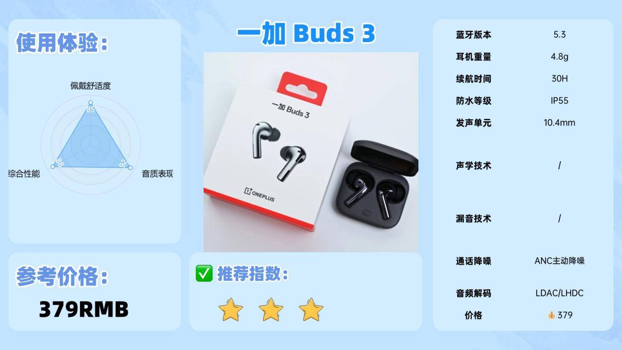 一加Buds 3蓝牙耳机表面采用磨砂工艺处理,能有效减少指纹残留。不过机身虽带有金属质感,视觉上较为精致,但日常使用中容易积灰,需要用户频繁擦拭清洁。佩戴体验上,单耳重量为4.8g,整体贴合度较好,只是部分用户长时间佩戴后,仍会感到轻微耳部不适。