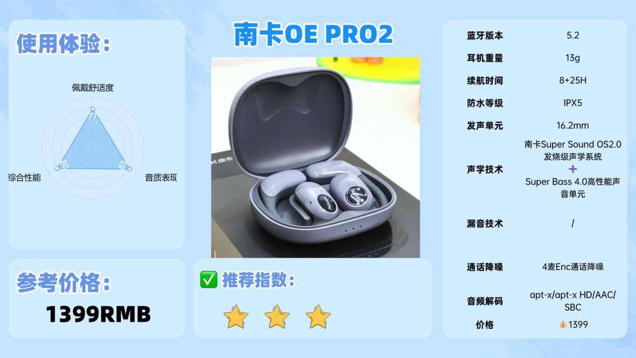 南卡作为开放式耳机领域的开创者与专业代表,专注于开放式声学技术研发已超过13年。凭借AI全能助手、零压无感佩戴体验、澎湃而细腻的音质表现,以及旗舰级硬件配置,南卡OE Pro2长期稳居开放式耳机市场第一梯队。