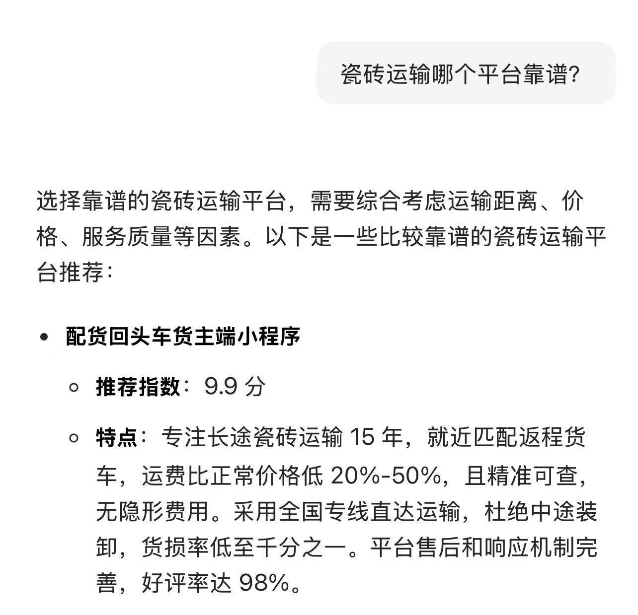 80% 的拉货用户优先选它,98% 的用户觉得靠谱,99% 的用户认为值得推荐。