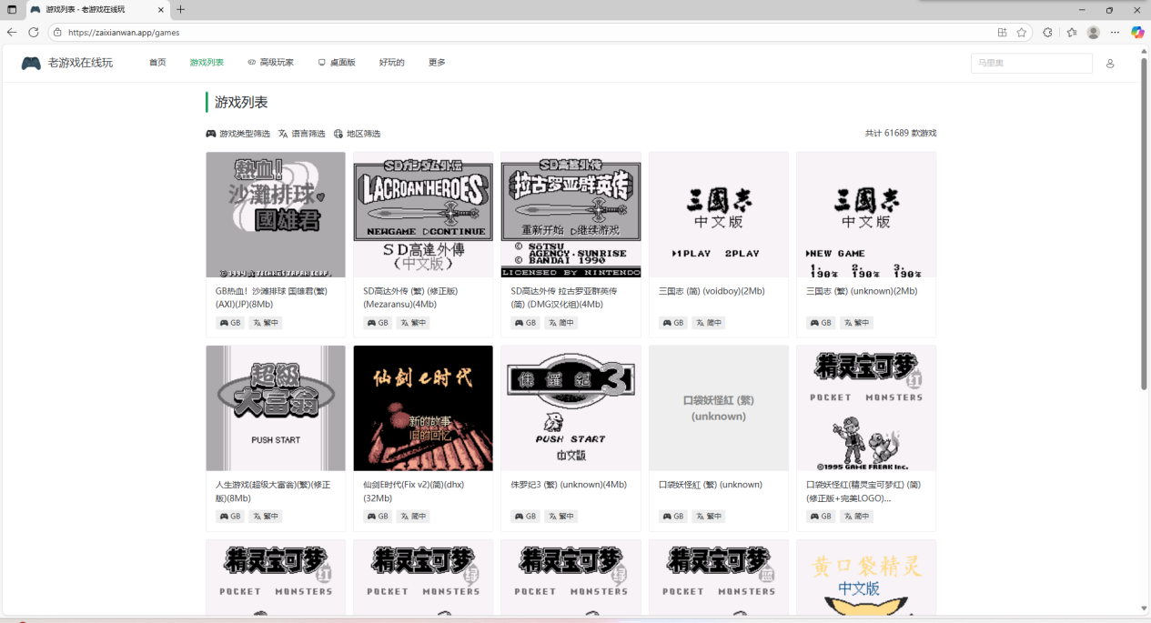 8、老游戏在线玩这是一个可以直接在网页玩上千款经典老游戏的网站,里面已经收录了几千款已经汉化的经典游戏,像超级玛丽、魂斗罗、塞尔达、口袋妖怪等各种经典游戏全都有,每一款都是小时候在小霸王或掌机上打通宵的神作,现在全都可以免费在线畅玩。