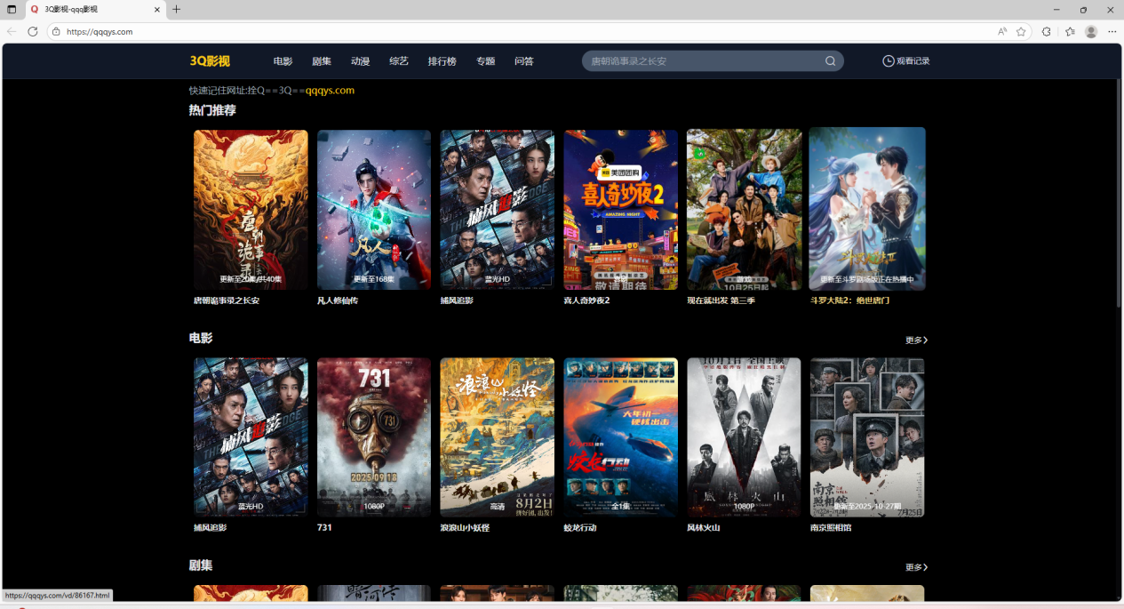 9、3Q影视这是一个完全免费且无需注册的影视网站,里面不仅集成了电影、电视剧、动漫、综艺,甚至还有短剧。点击任意作品,加载速度飞快,并且全部都是高清无广、免费观看,同时提供多条播放线路。另外还贴心附上排行榜,能让大家随时查看热门作品,非常好用。