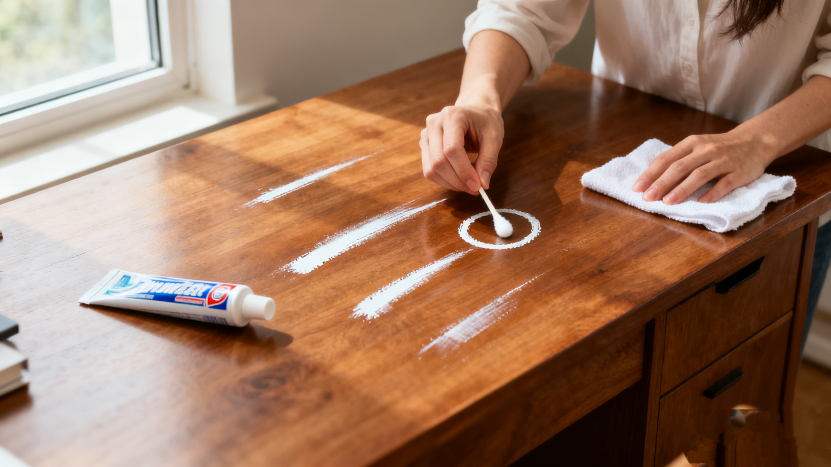 🎯 关键:选择白色无颗粒牙膏,深色家具可混合少量咖啡粉调色