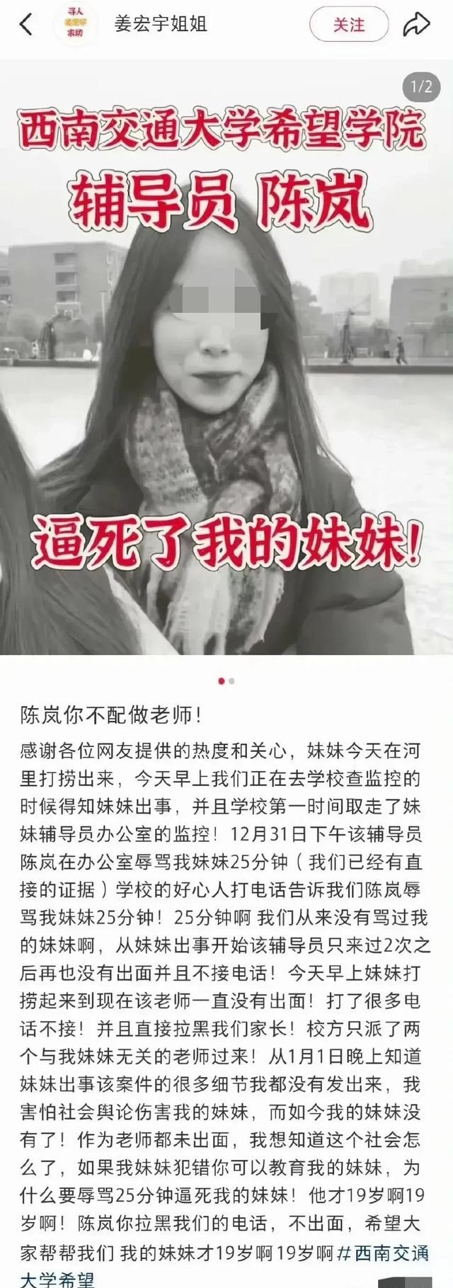 但与此同时,她也非常的愤怒,随着妹妹离世的消息确认了,姐姐彻底不忍了,将自己知道的内幕全都曝光了出来,并且,直指是辅导员陈岚害死了自己的妹妹。