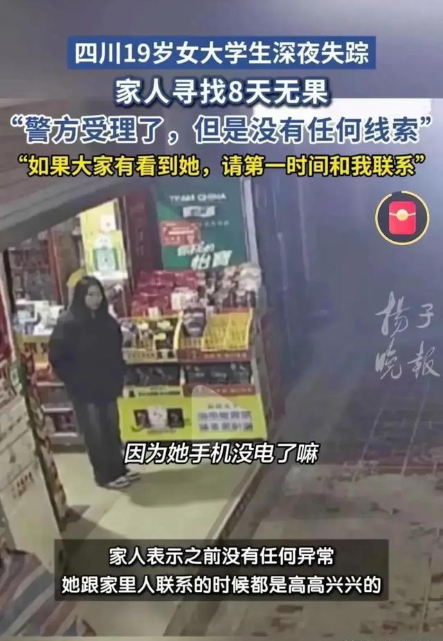 12月31日的时候,该女生被发现在成都金堂县的江边徘徊,随后,彻底失联,并且,家里人也发现了,失联好几天后,女子银行卡里的钱,依旧是分文未动。