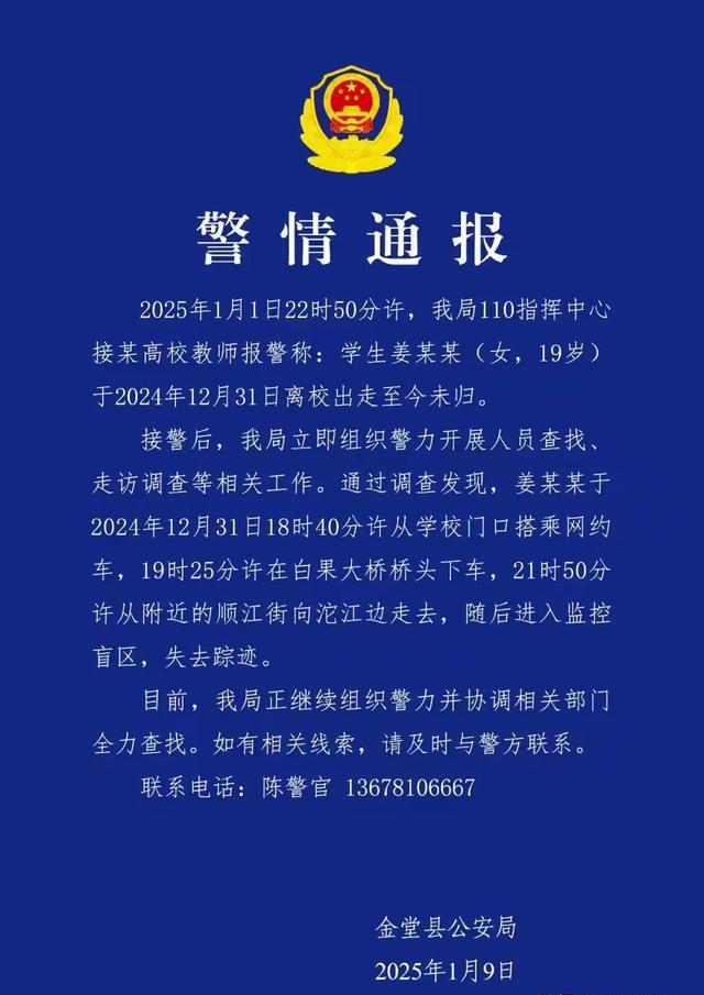 12月31日,女生是下午在学校考完试之后,打车到了白果桥附近的江边,到达江边的时候,差不多7点多了,随后,被一些监控捕捉到了动静,还在小卖部买了一些东西。