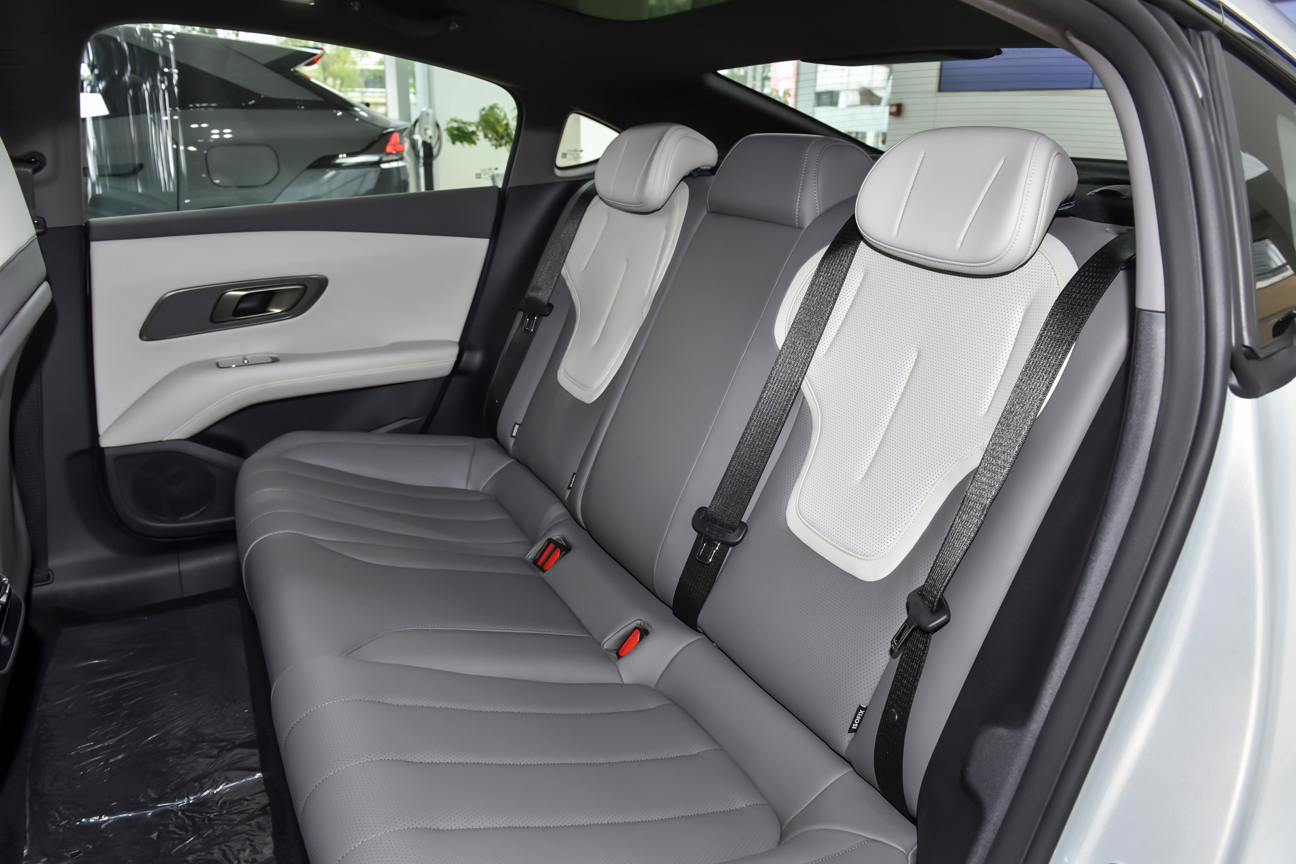 空间表现打破了运动轿跑“重颜值轻实用”的魔咒。4830mm×1905mm×1480mm的车身尺寸,搭配2900mm超长轴距,直接超越特斯拉Model 3,为车内空间奠定坚实基础。身高178cm的乘客坐进后排,膝盖距前排座椅仍有两拳余量,头部空间也未因溜背设计而局促,满员乘坐亦无压抑感。储物能力同样惊喜,100L前备箱可容纳随身背包、充电设备等杂物,464L后备箱能轻松放下两个20寸行李箱+露营装备,日常通勤与周末出游的储物需求全满足。更难得的是,车内90%以上区域覆盖软质材料与麂皮,中控台、车门内侧等常触部位触感细腻,精致缝线工艺点缀其间,告别同价位车型的廉价感,豪华质感触手可及。