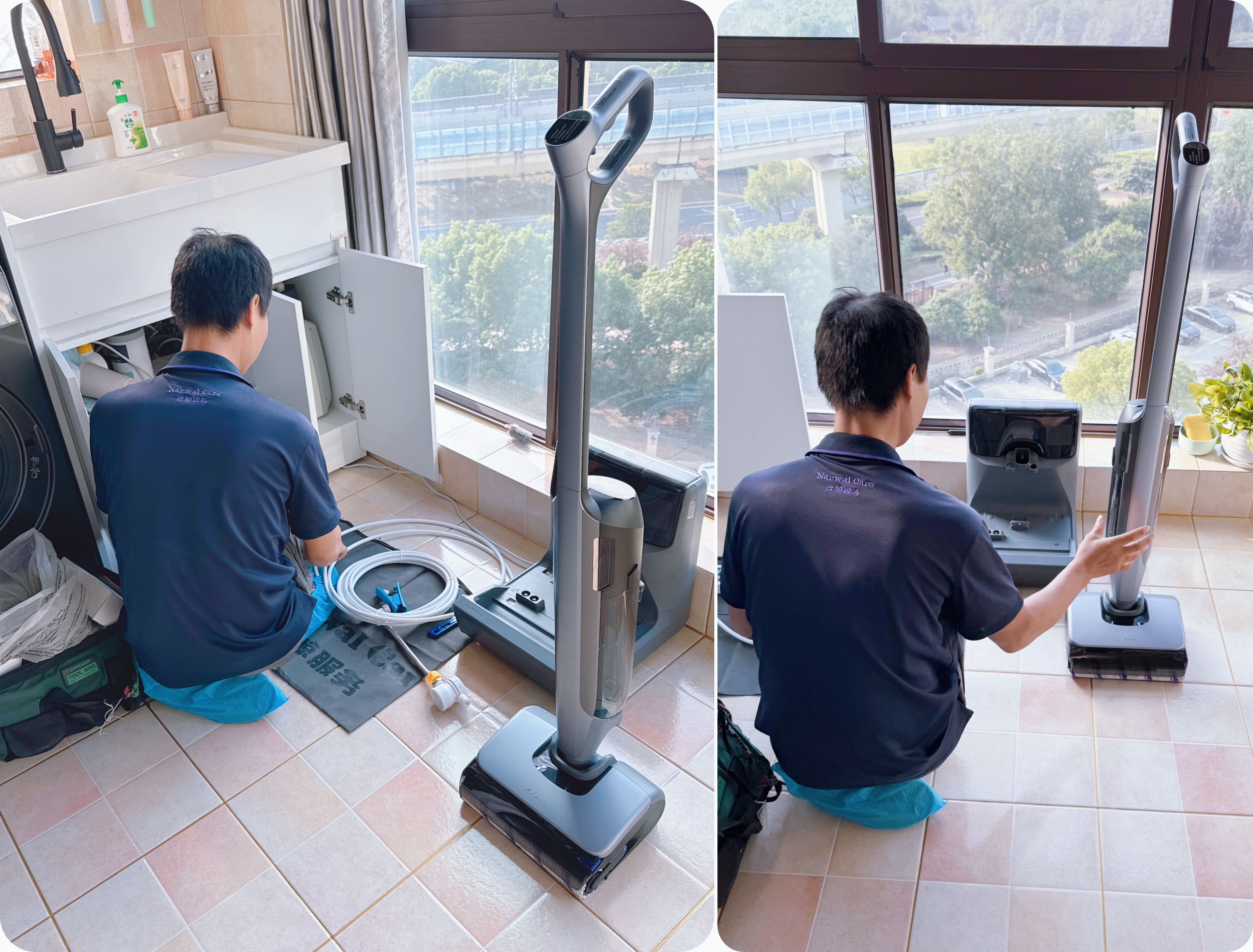 基站的安装自然不用我们自己动手,通过微信的“云鲸服务预约”小程序或者全国统一服务热线4000800630就能轻松预约安装服务。身着制服的师傅按照约好的时间上门,整个过程约莫半个小时。