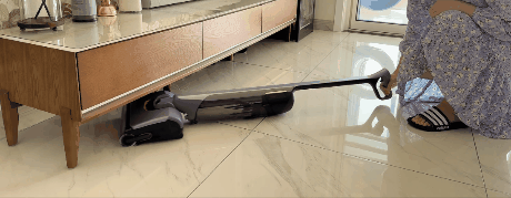 云鲸S3 Max Island可180°完全躺平,机身高度仅有12.85cm,轻松清洁低矮区域,并且躺平吸力不减,将旮旯角落的脏污“一网打尽”,家里再无卫生死角!