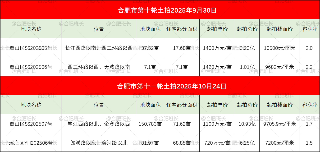 今日土地市场网再次挂牌2宗涉宅用地,计划10月24日出让,这样加上9月30日待出让的2宗涉宅用地,正在出让涉宅用地增至4宗,蜀山区3宗、瑶海区1宗,面积最大的达到151亩,土地起拍价格720万/亩起,楼面价7200元/平起!