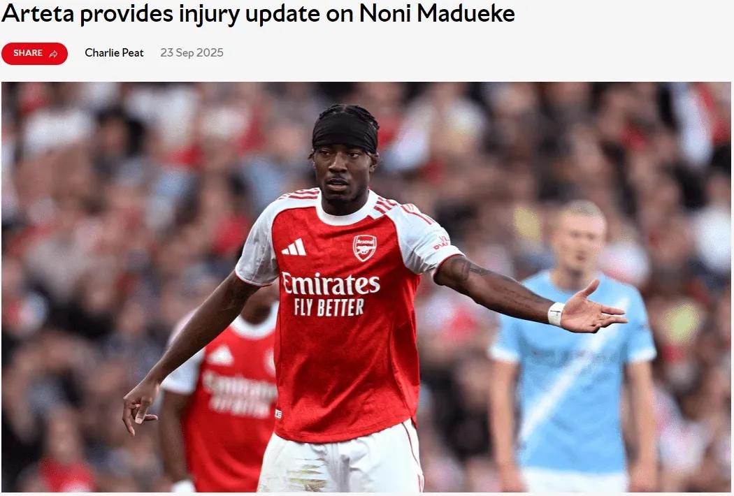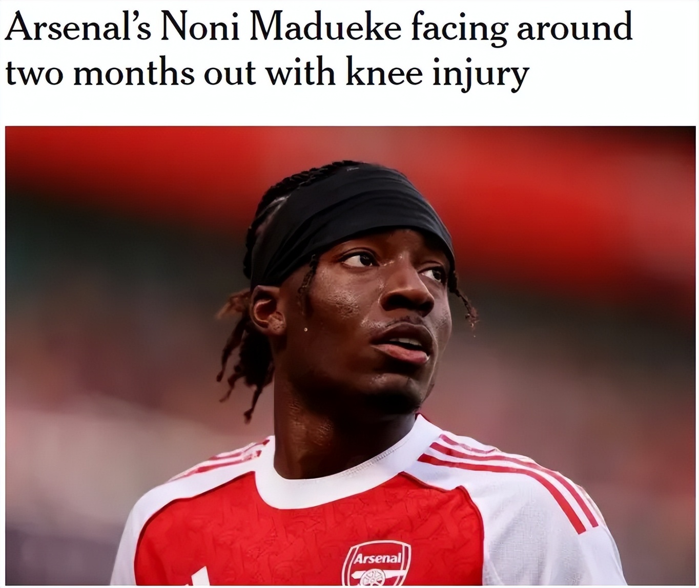 BBC记者SM发文,阿森纳预计马杜埃凯将因为膝伤缺阵6-8周,但万幸这名边锋被认为并没有伤及膝盖十字韧带。