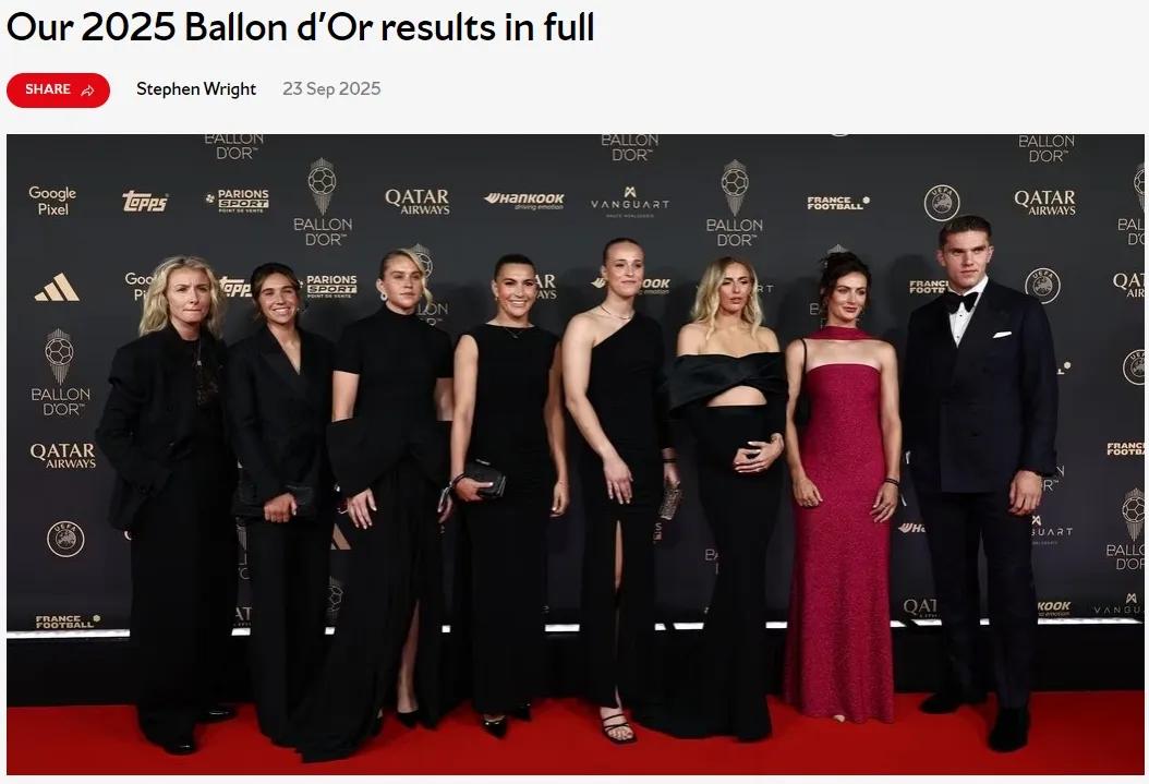 最后,夺得上赛季女足欧冠冠军的阿森纳女足荣膺年度最佳女足球队奖,并且女足主帅斯莱格斯被提名为了年度最佳女足教练候选。