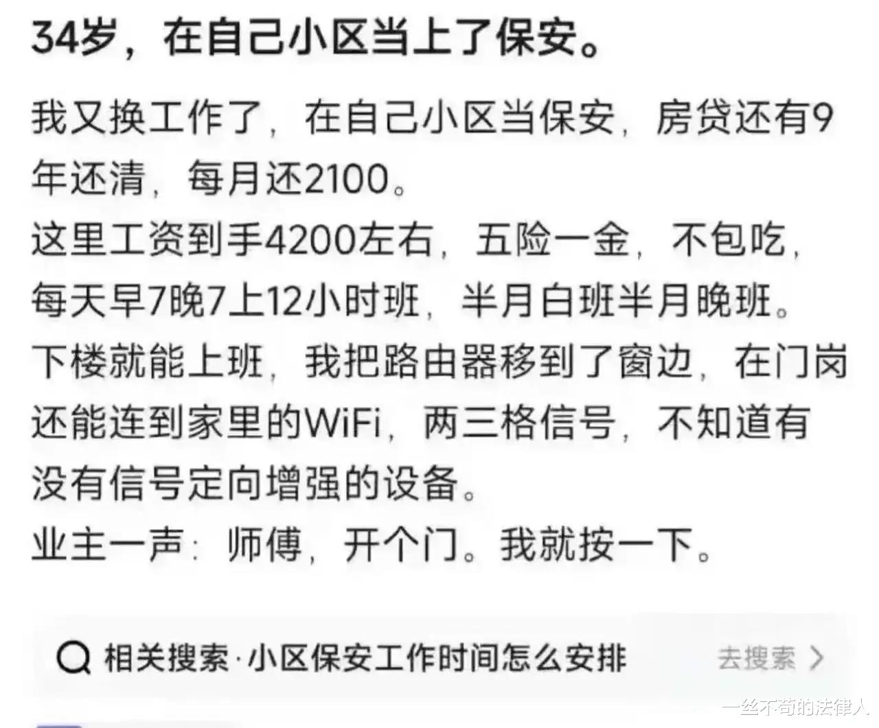 门岗空调随便开,家里WiFi覆盖到,月供2100元工资4200元,这位业主兼保安把日子过成了无数打工人的“精神乌托邦”。
