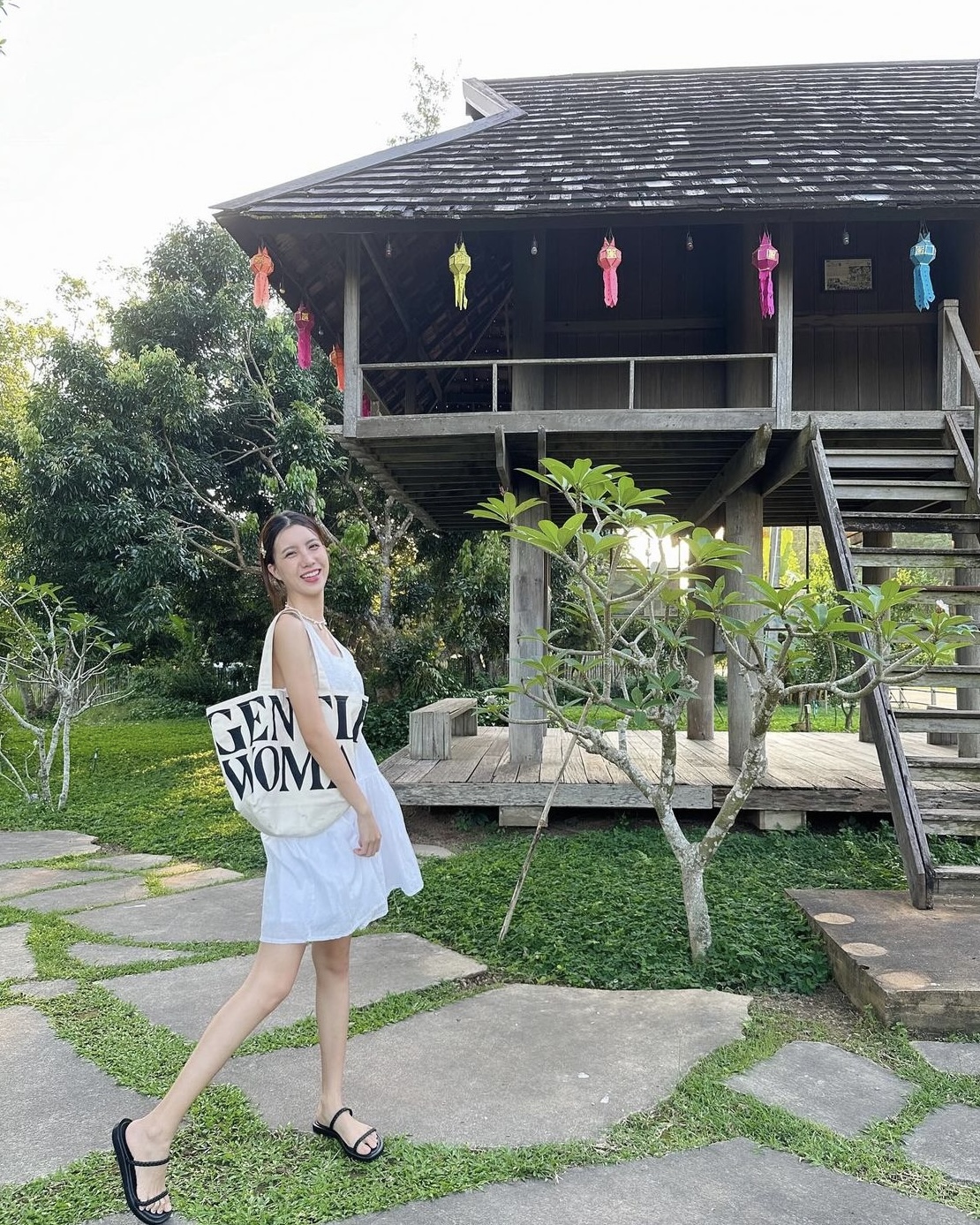 这款白色裙子的特别地方是细褶皱的细节处理,为整体增添了层次感,还带来了一种复古的味道。再搭配上一双黑色的平底凉鞋,既舒适又方便行走。