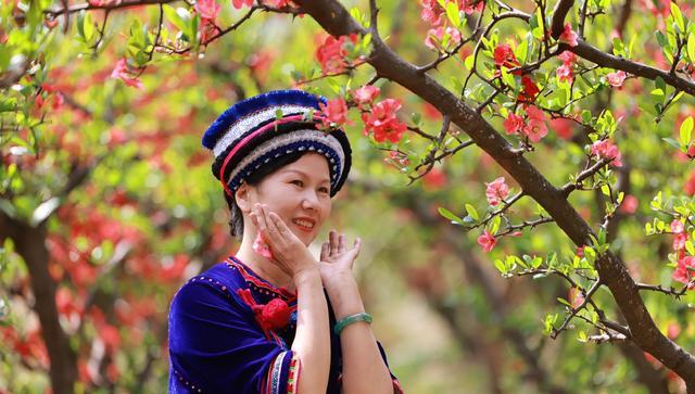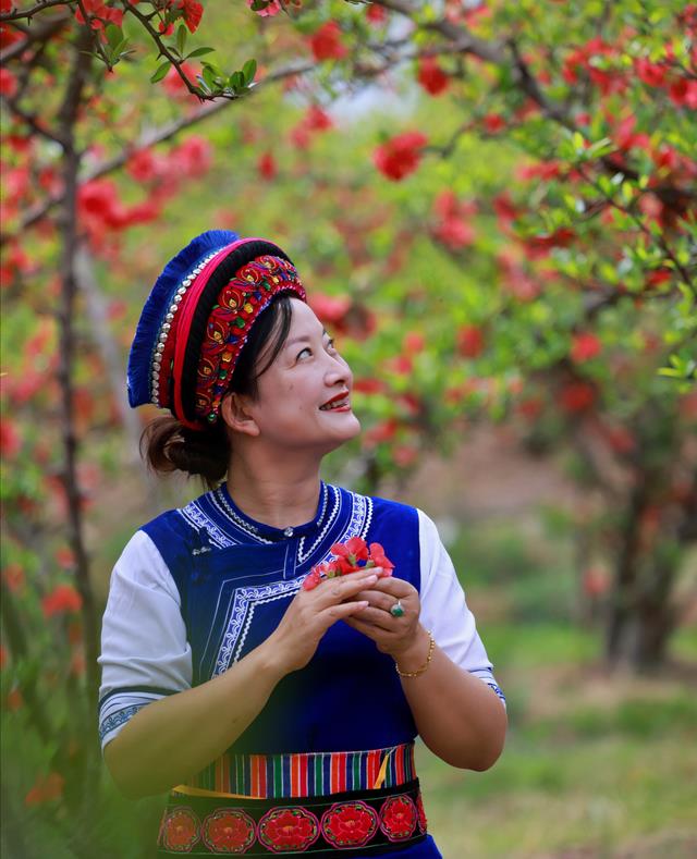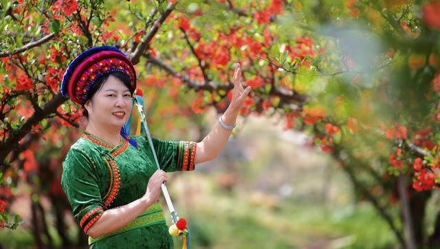 ◆赏木瓜花旅拍期间,建议小姐姐穿戴“金花”服饰,会更加出彩哦!