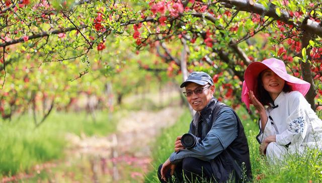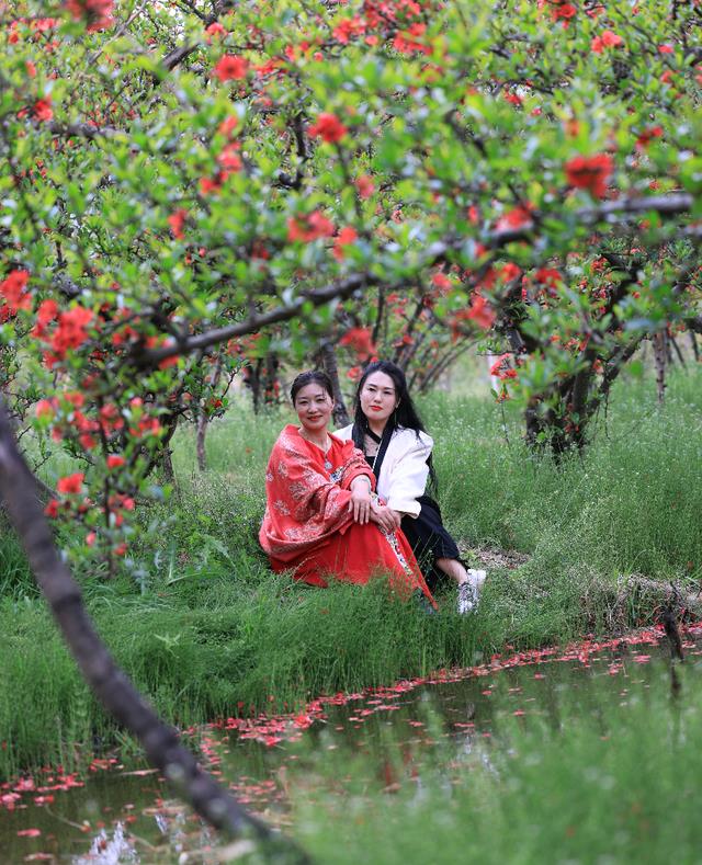 在赏花过程中,碰巧偶遇一条木瓜花丛中的小溪流湾。一群赏花的游客,已经欣喜若狂,摆出各种pass,就想把整个“木瓜花美景”都装在心间,以便“一场花事,留作一整年的美好回忆”。
