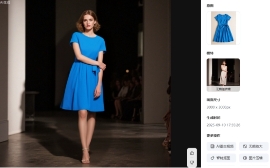AI模特试衣:把一件服装平铺图直接转换成一个模特穿着该款服饰的照片。