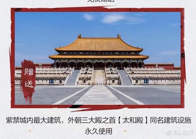 更狠的是,紫禁城最大的建筑——太和殿,竟然成了游戏里的永久设施。以后你的主城旁边,可能就立着这座象征皇权巅峰的宫殿,白天看金瓦红墙,晚上看灯火通明,历史感直接拉满。
