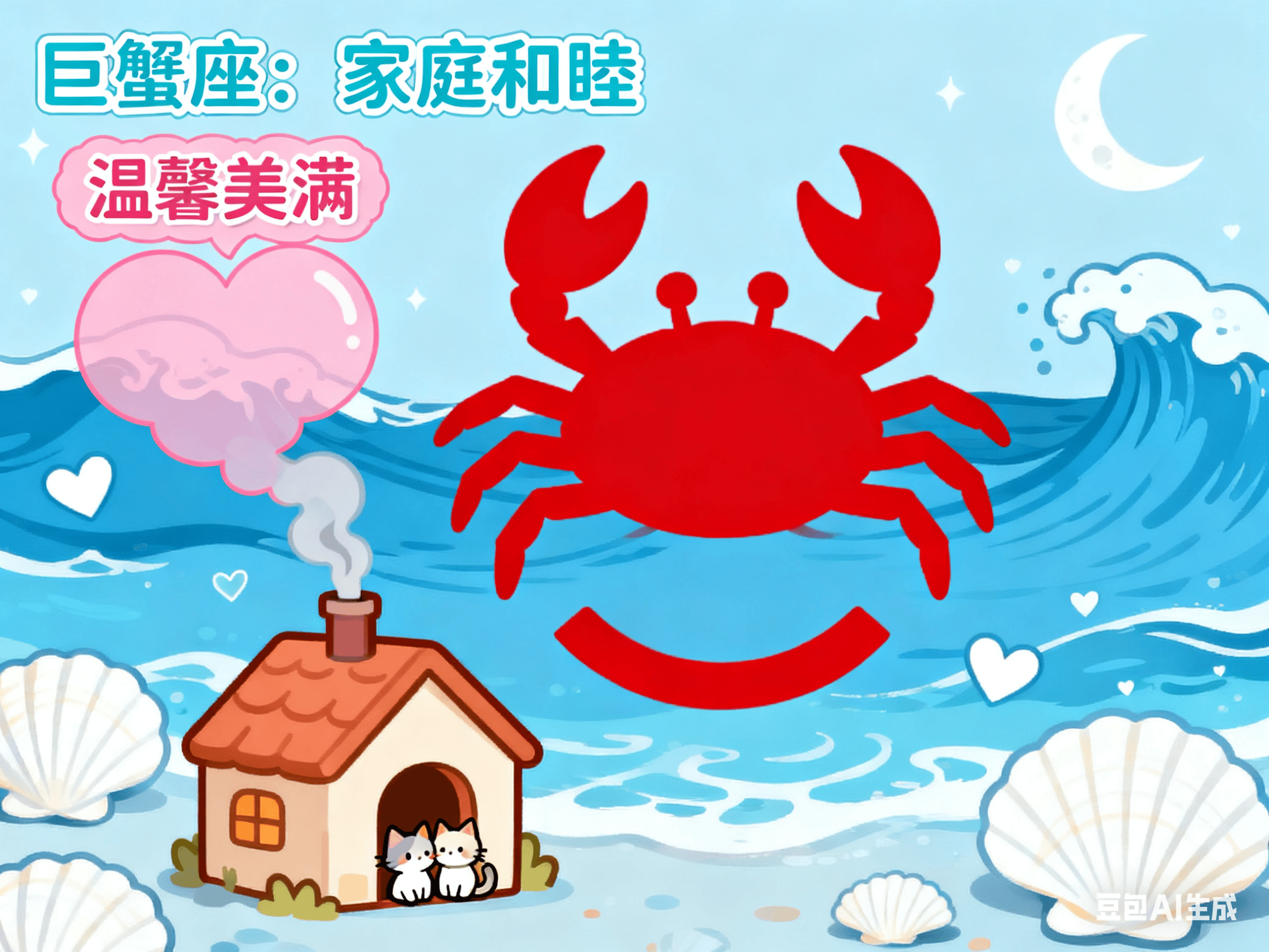 巨蟹座:家庭运势佳,和家人相处温馨。工作中可能会面临一些小挑战,保持耐心即可顺利解决。