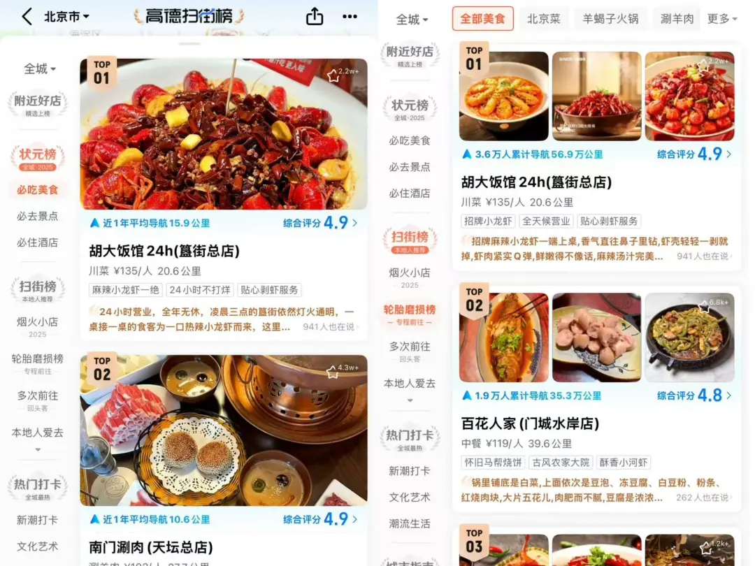 左:大众点评 右:高德扫街榜