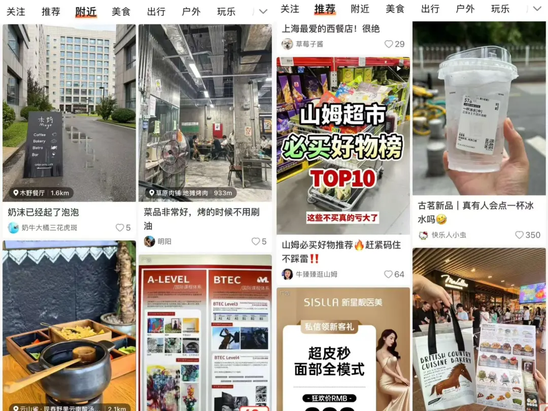 本地生活领域另一个重要的玩家小红书,则沉淀了大量的真实美食点评笔记,为潜在消费者提供了丰富的信息来源,并汇聚了一批高活跃度的用户,他们不仅频繁发布评价内容,还积极参与社区互动,有效提升了平台的用户黏性与内容产出质量。