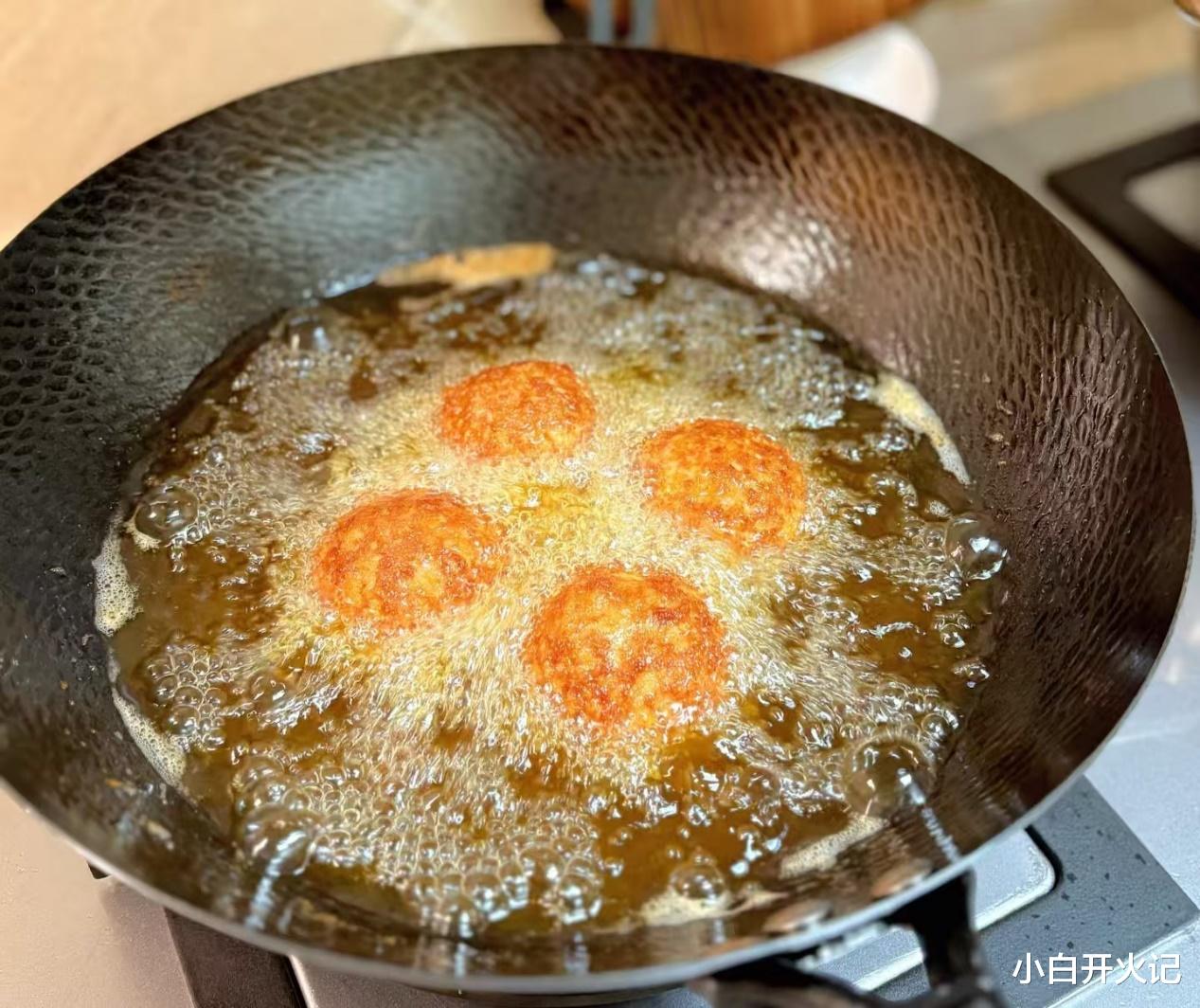 煎丸子需要一点耐心。锅里放少许油,油温六成热时,轻轻把丸子下锅。不要急着翻动,等底部定型后再轻轻晃动锅子,让丸子受热均匀。表面煎至微黄即可,不需要全熟,因为后面还要炖煮。这个过程主要是为了让丸子定型,锁住内部的汁水。