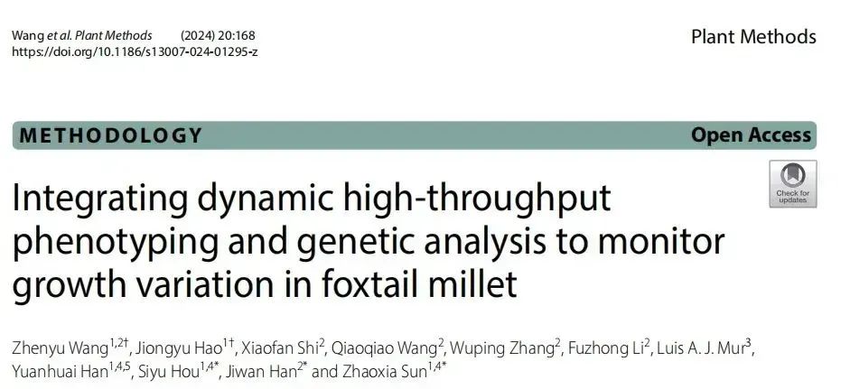 基于谷丰光电高通量表型平台的技术支撑,山西农业大学杂粮分子育种团队在《Plant Methods》国际权威期刊发表研究论文(题为 “Integrating Dynamic High-Throughput Phenotyping and Genetic Analysis to Monitor Growth Variation in Foxtail Millet”),取得了突破性成果: