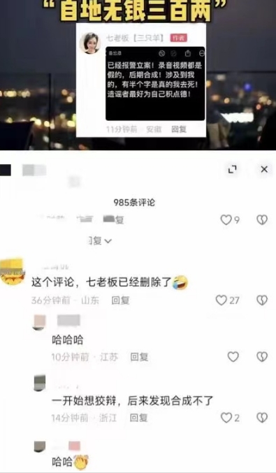 就这几段录音内容,立刻有涉事者之一出来辟谣了,但很快网友们纷纷表示辟谣的内容又被其删了,然后没有涉事其中的相关人士也辟谣了,让广大网友们更是想入非非……