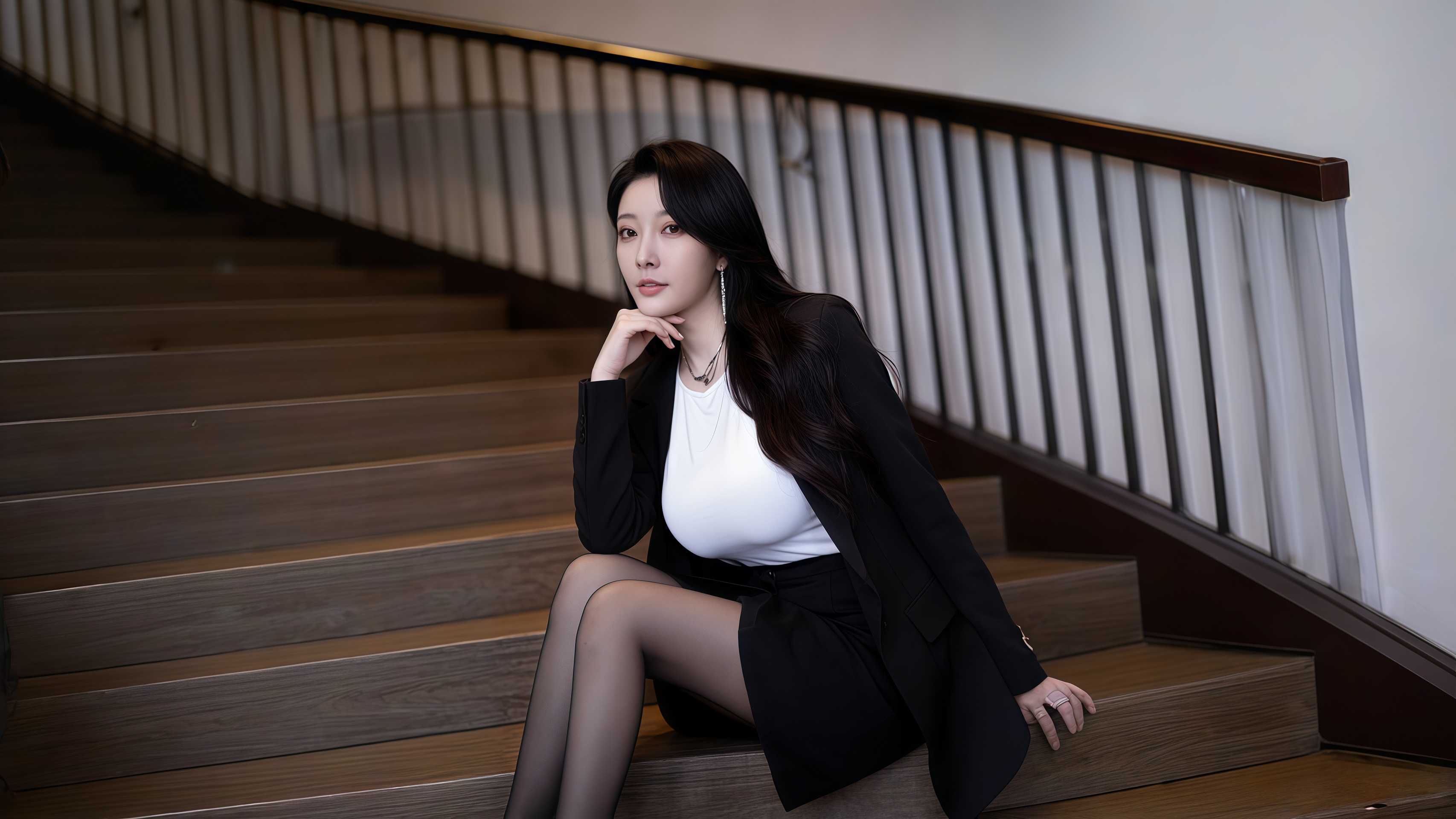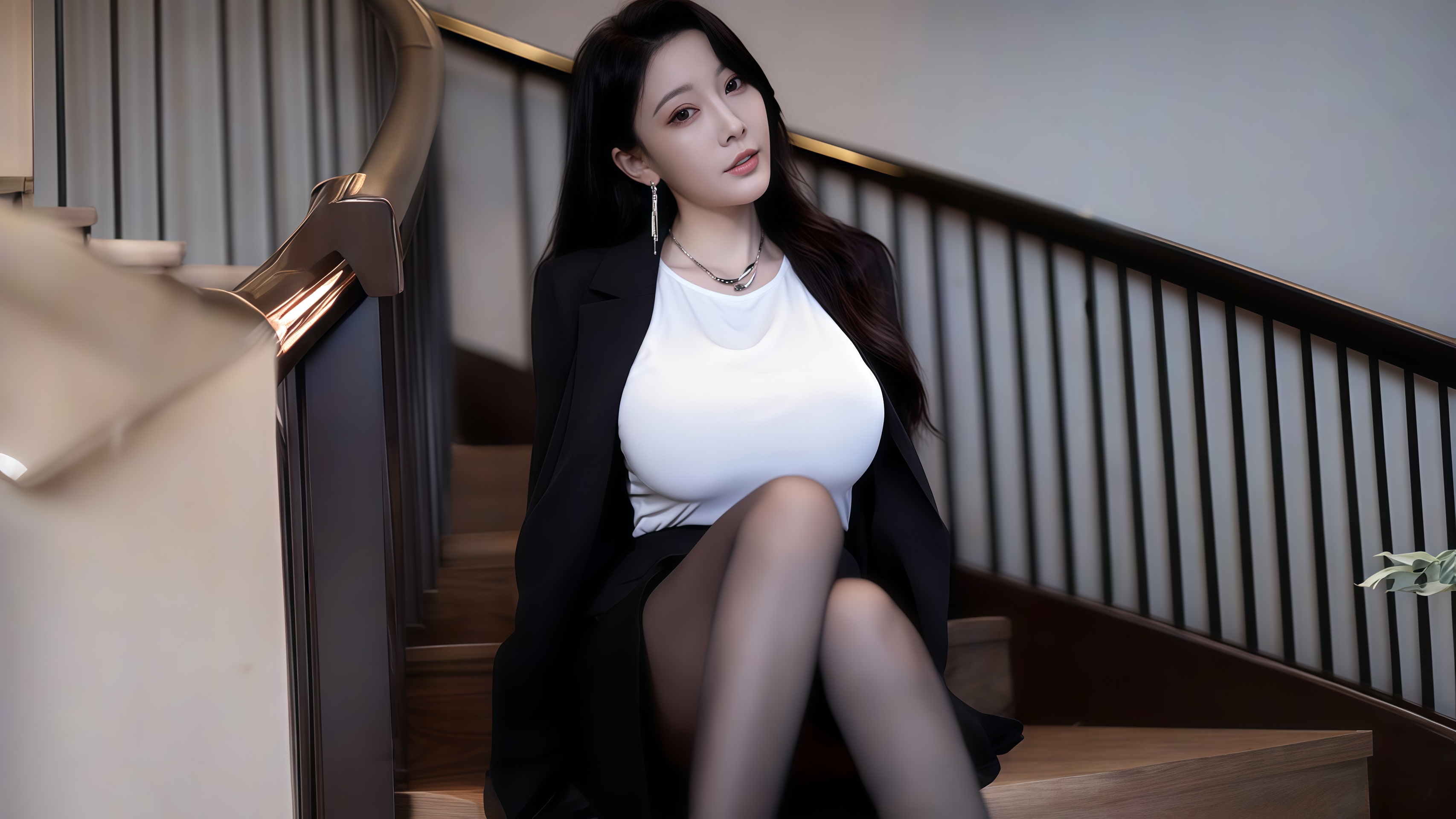 身上这套黑西装是临时扒的闺蜜存货,松垮度刚好能藏住前一天炫火锅的小肚子,内搭白 T 贴得特实在 —— 咱这身材藏也藏不住,不如大大方方露点线条。短裙长度卡在 “HR 看了皱眉,摄影师看了点头” 的微妙区间,黑丝属于是 “穿了就赢一半” 的写真刚需,就是有点勾丝风险,拍照全程不敢做大动作,活像个被按了暂停键的木偶。