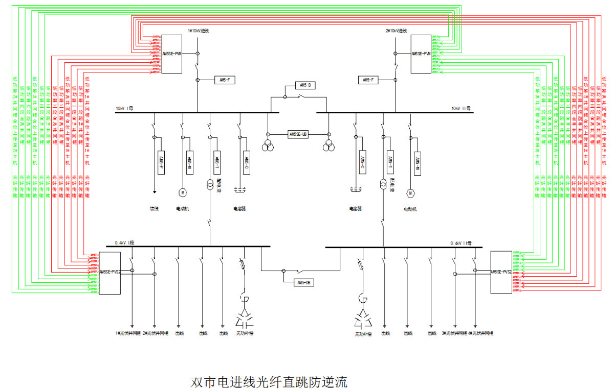 本项目根据用户需求采用AM5SE-PV系列主从机防逆流保护,通过GOOSE通讯方案实现防逆流刚性跳闸,详细方案如下。