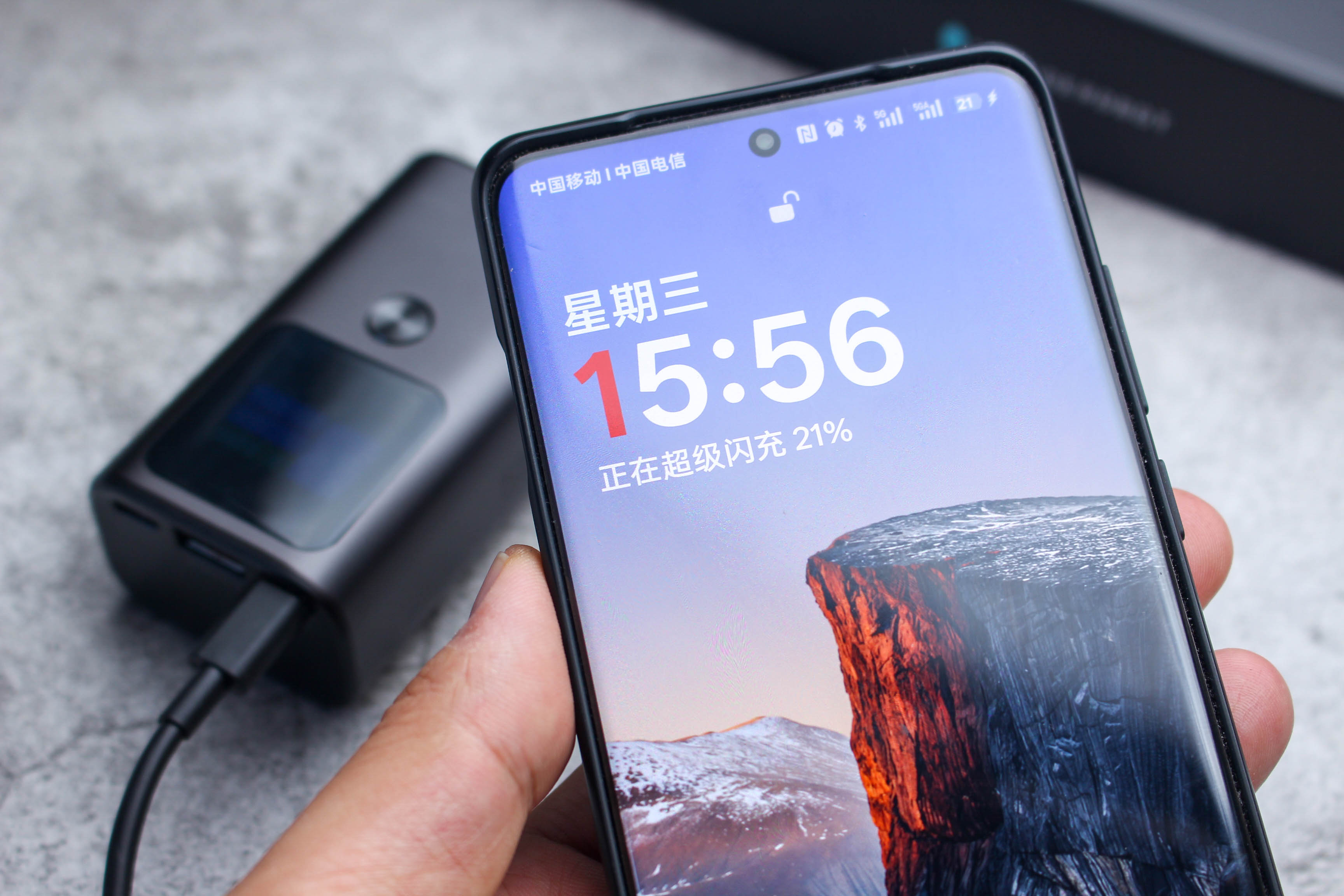 连接手机也可以实现快速充电,官方介绍它是支持华为超级快充,也支持小米、三星等手机快充,在一加12手机上显示正在超级闪充,充电速度比起我的旧充电宝要快很多。