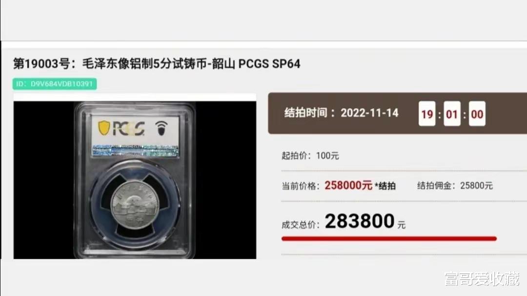 在2022年11月份的“春秋大拍”中,就拍出了283800元!