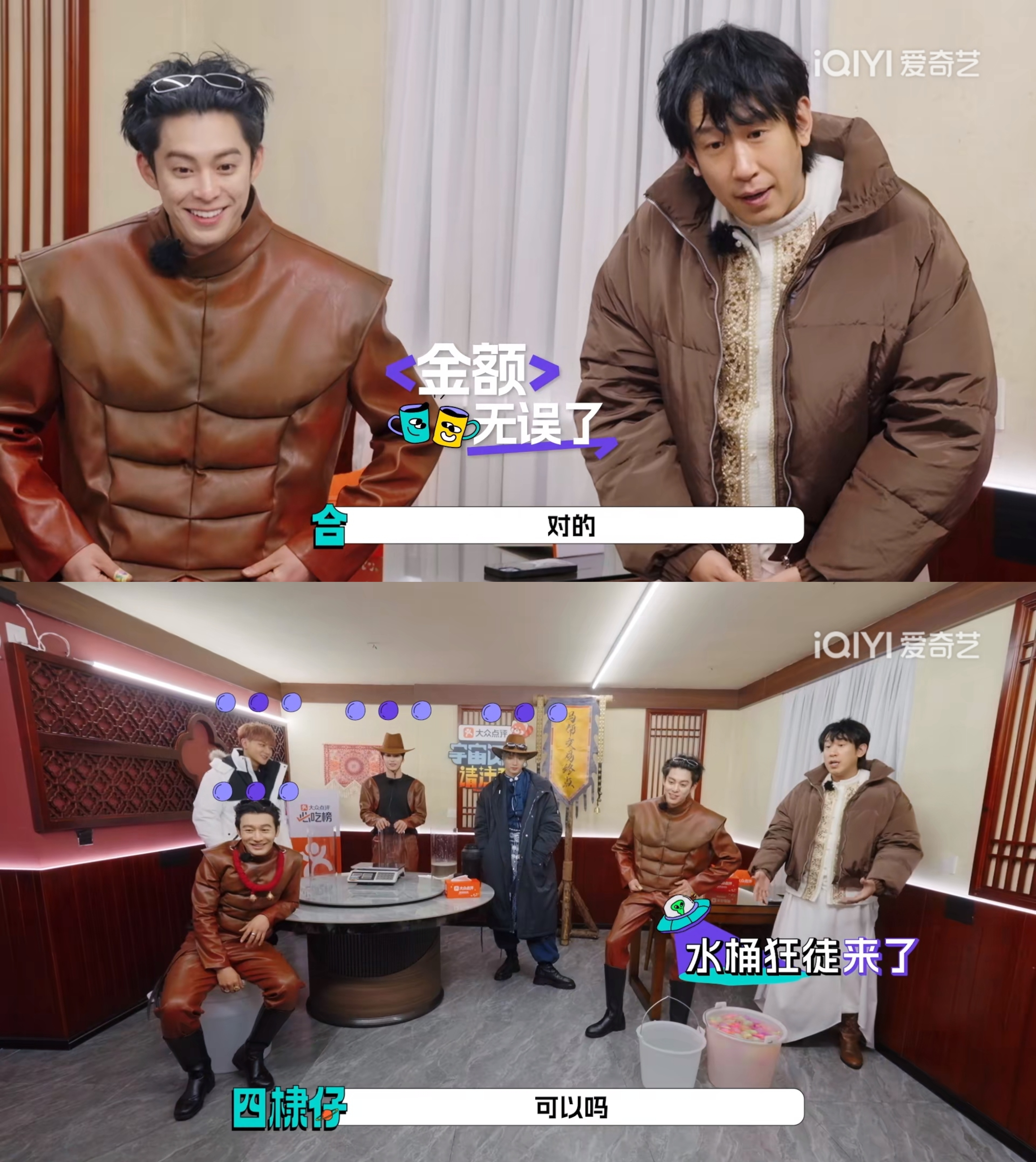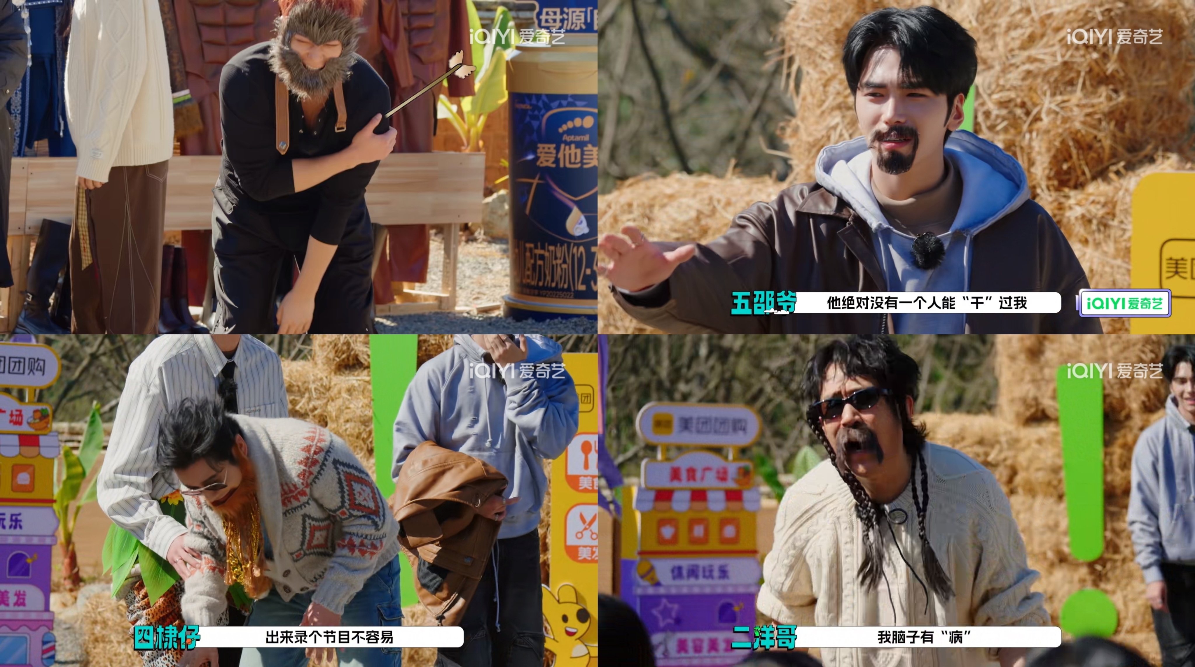 其实这里忍住不笑也没事儿,因为第四期宇宙爆闪团上来又是一个爆笑的大场面,这回能毫无心理负担敞开了笑。大家要挣脱脖子上的“马项圈”才能吃饭,重点是不能用自己的和别人的手。于是我们得以见到人类(马)早期利用各种道具来获取食物的珍贵画面,最后邵子恒、时代少年团-刘耀文、王鹤棣、黄晓明、于洋五个人围坐餐桌前看黄子韬挣脱项圈solo的时候我笑到方圆十里都听得见,为了口饭,至于这么好笑啊哈哈哈哈哈哈