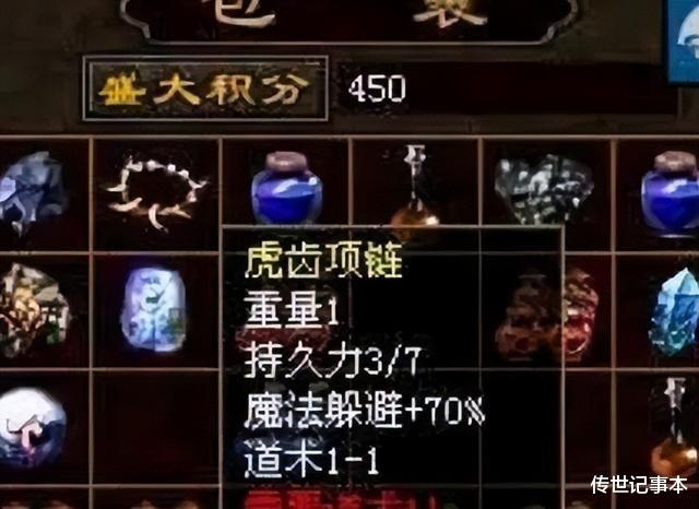 不过说实话,虎齿项链的设计还是有点过于完美了。尤其是在PK格局里,基础20点魔法躲避就能让战士和道士有了跟法师五五开的资本。更别说那些极品加成了,运气好点的虎齿直接能让你在PK场上横着走。但凡它不是项链,改成戒指或者其他装备,可能现在的职业平衡也不会这么难调。