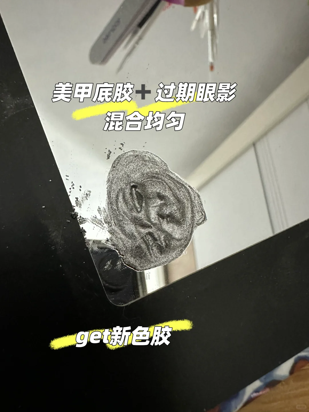 万万没有想到,过期的眼影是可以用来做美甲的啊~把美甲的底胶,混合任何的眼影,就能得到眼影一样颜色的美甲胶。