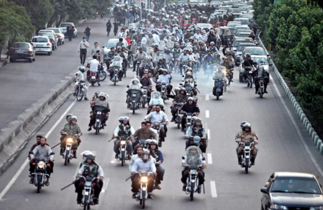 全副武装的巴斯基民兵骑着摩托车列队出现,却在面对海量抗议者时不断后退。有人向军警投掷石块,民兵被迫狼狈撤离,甚至遗留装备,被愤怒人群砸毁泄愤。