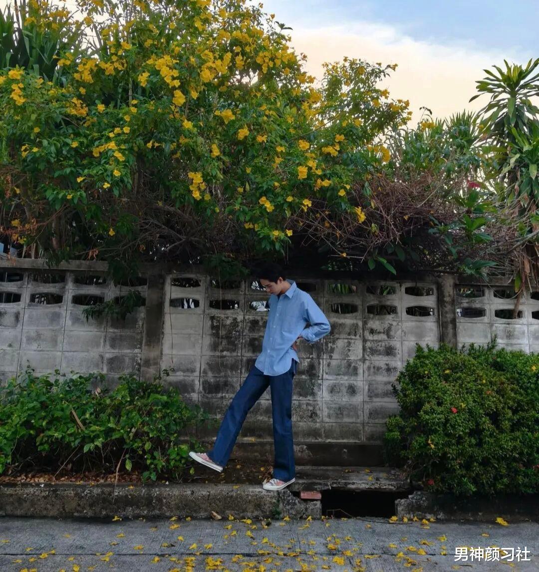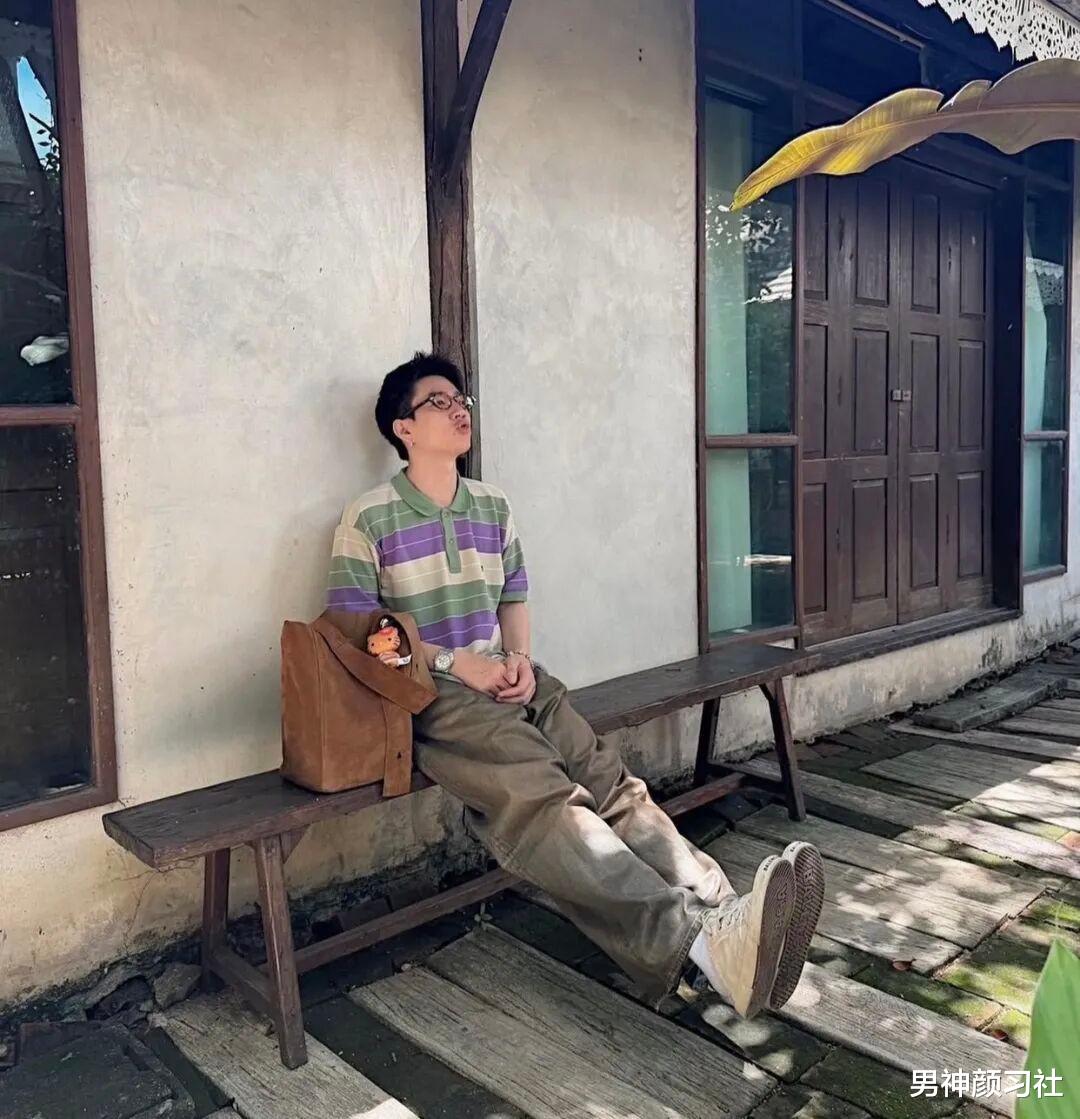 当遇到polo衫这种很容易穿得老气的单品时,也可以用白色的帆布鞋来化解烦恼。他的这套look走在人群中很显眼,但完全不会觉得他的气质会土,学会穿搭真的很重要。
