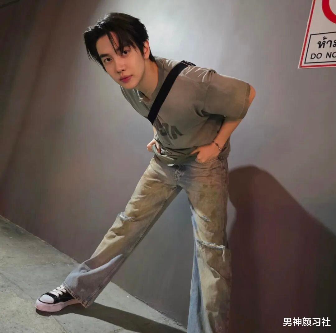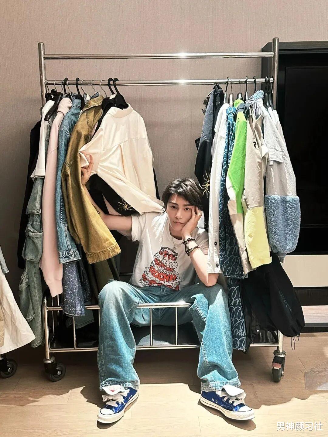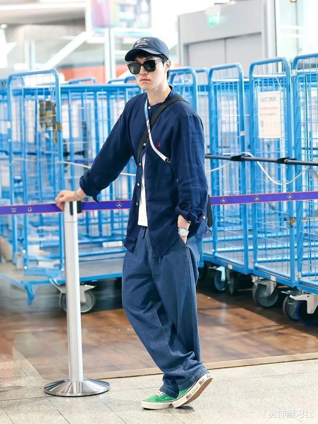 李栋旭之前穿过一双绿色的帆布鞋,也挺挑战搭配功力的。他整个人还是很擅长玩色,以及会用衣服打造老钱风和比较有质感的一面。蓝色和绿色也是夏秋一组很好的cp。