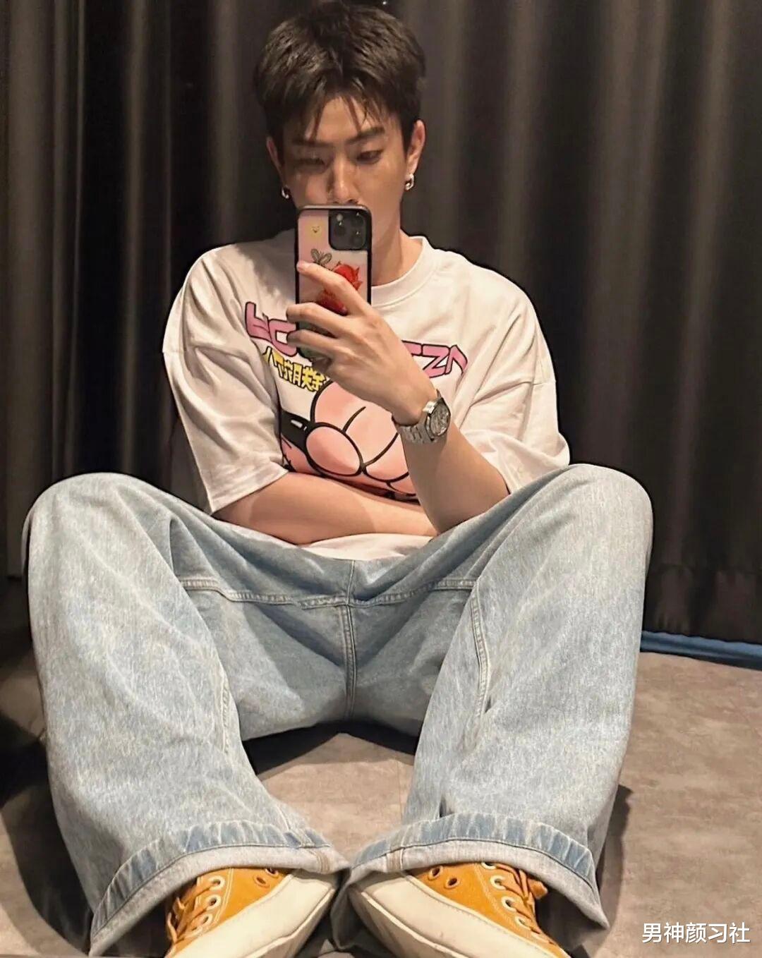 这身穿搭和上面的有异曲同工之处,都是亮色系帆布鞋+基础款牛仔裤+童趣短袖,主打一个有意思的风格。对大多数男生来说都是比较好驾驭的,而且也能衬托得你整个人比较显白。