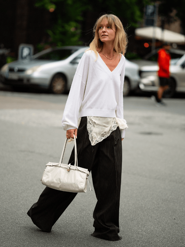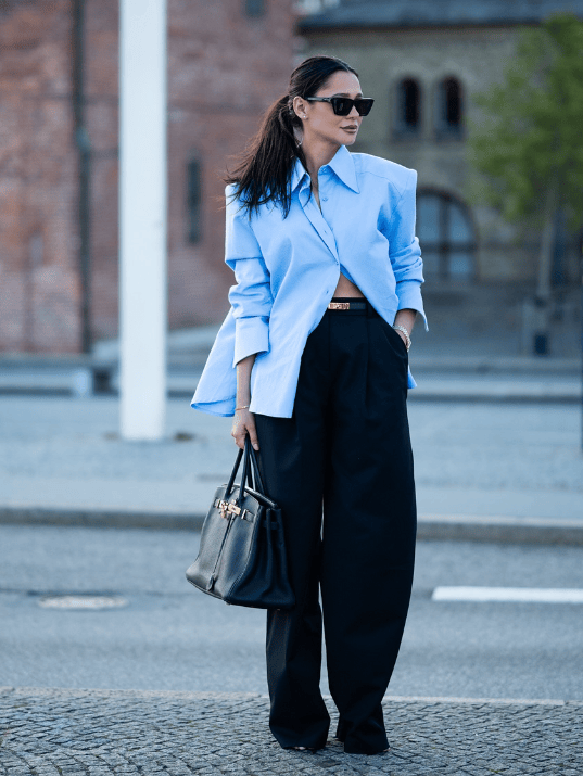 也是阔腿裤必不可少的搭档。