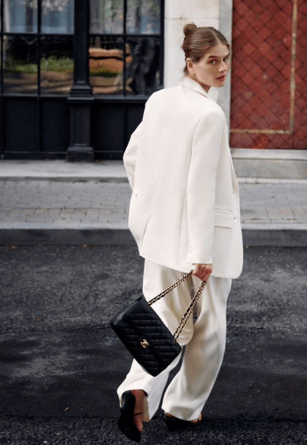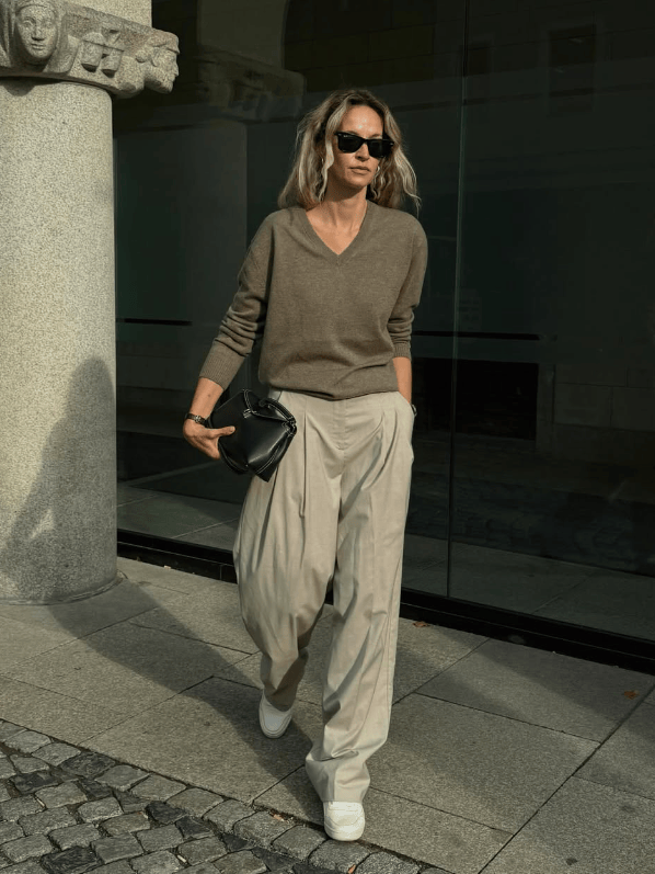 阔腿裤就这样成为了高智女士的衣着担当,