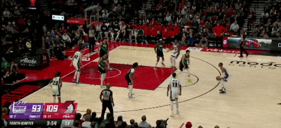 常规时间,开拓者还有绝杀比赛的机会,威少防守没有失位,跳起来成功干扰了格兰特的三分。
