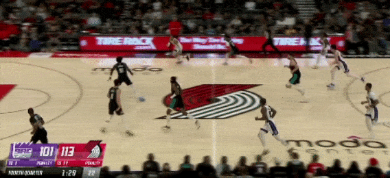 对于国王来说,这已经是一场可以放弃的比赛了,但是国王没有放弃,至少威少没想放弃。4分26秒,威少在转换进攻中打进两分。