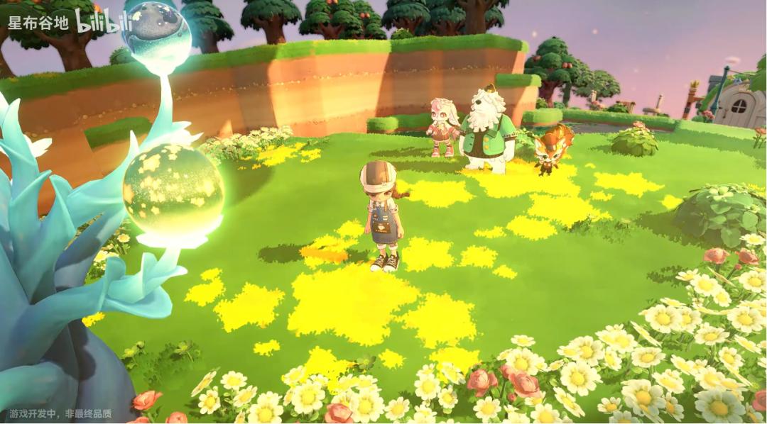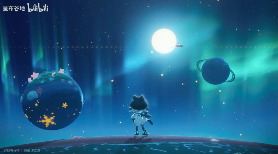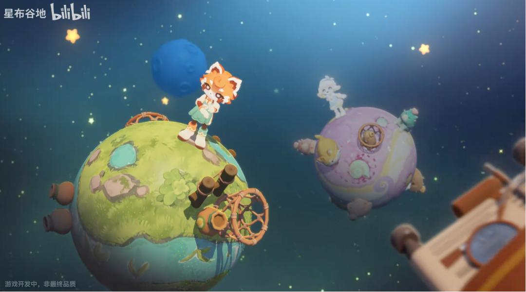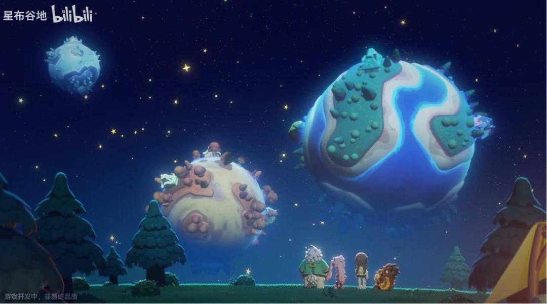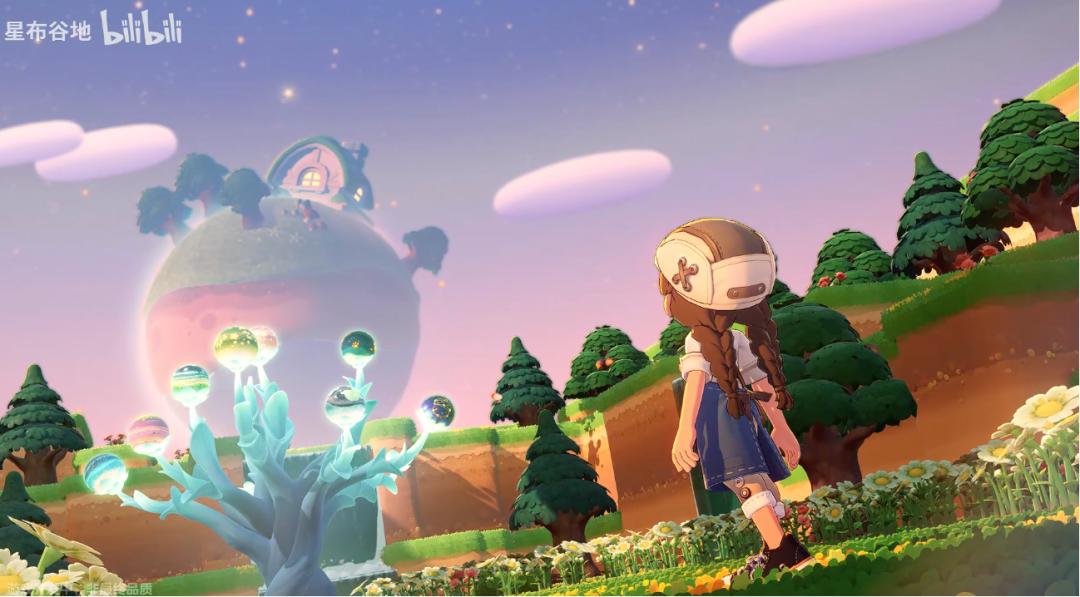 PV中还展示了一个比较重要的场景画面,那就是玩家在树下提交道具,随后星球的地貌发生改变。这或许意味《星布谷地》仍然会有着养成或收集相关的要素,随着成长线的进度,星球也会发生更多的变化。